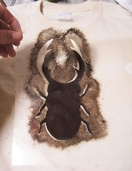 ステンシルのデザインをいませっせと考え中。クワガタTシャツがいい感じになりそう(完成↓)。