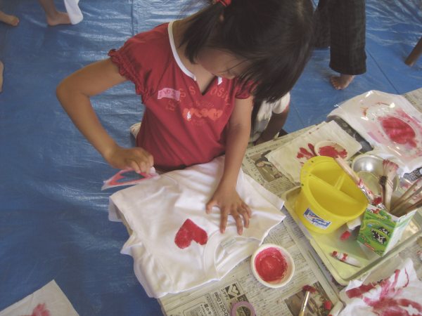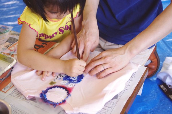 今回の2日も気持ちいい猛暑でTシャツ日和のちるみゅーにて、たくさんのこどもたちと一緒にTシャツ作りを楽しんできました。