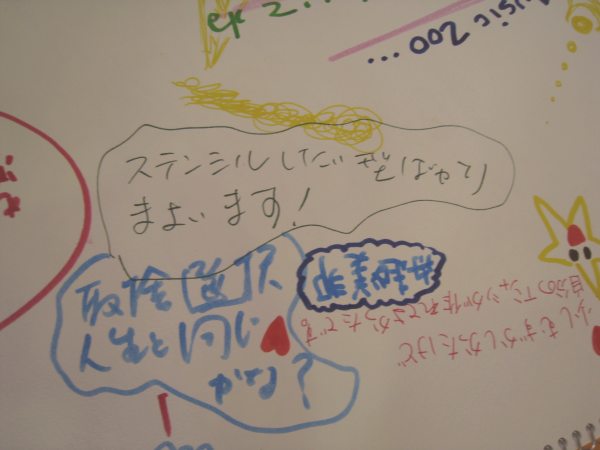 最初にステンシルでの方法をレクチャー。みんな真剣に聞いてくれてますね!