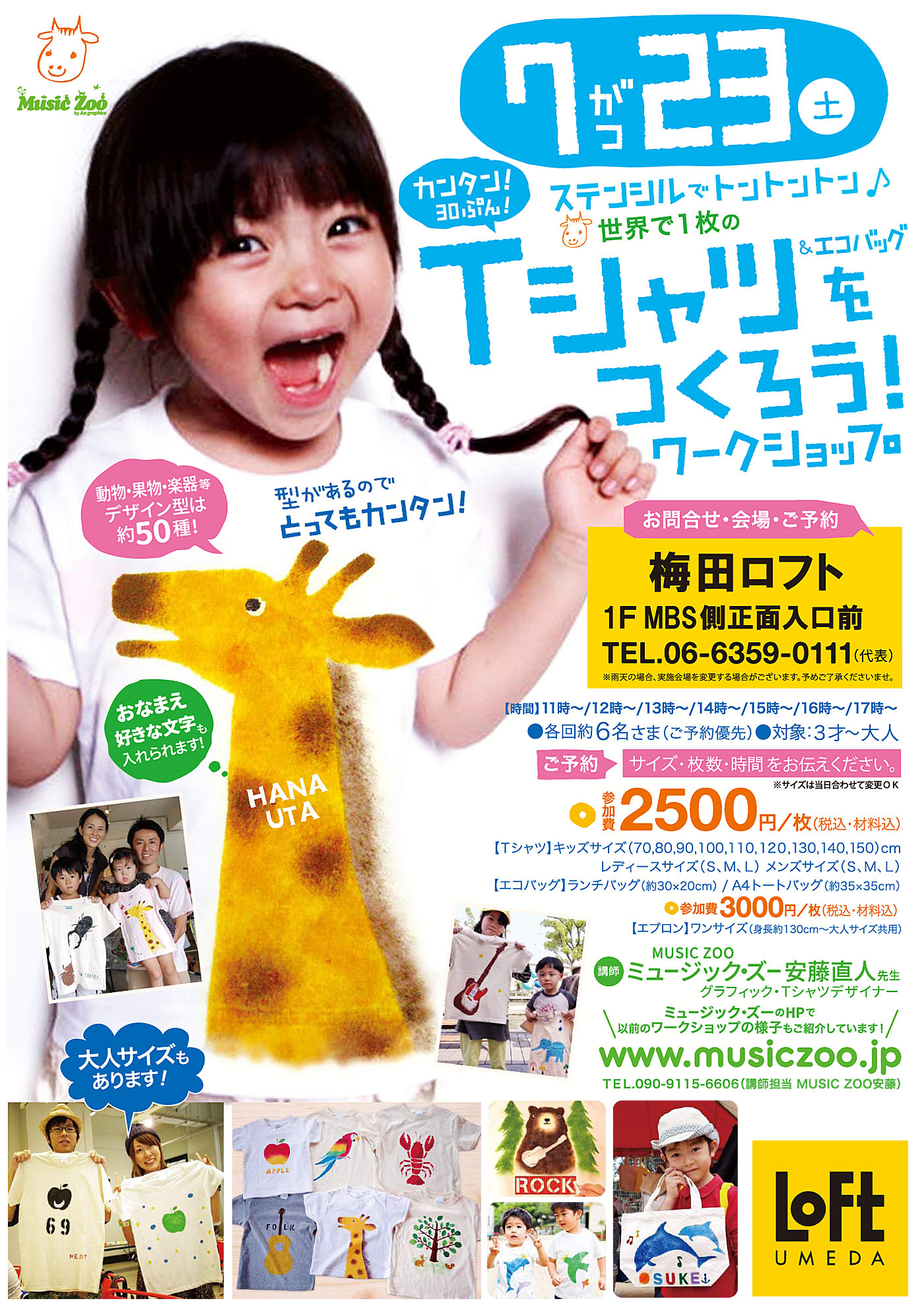 ・ワークショップのみ ¥1500 (Tシャツ1枚、材料費込)