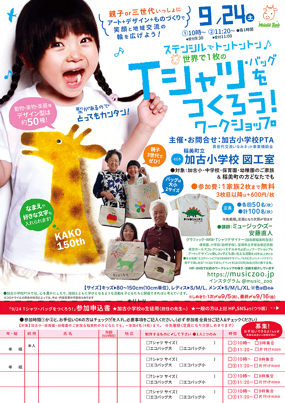 Jaajaライブで音楽・動物・ヘンテコTシャツをつくろう!ワークショップ