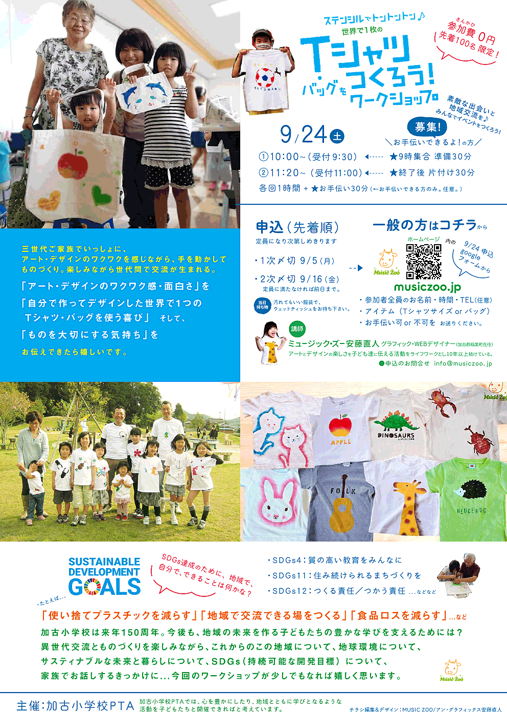 参加費:1800円(Tシャツ1枚・材料込・カマタ商店さんのおいしい1ドリンク付)