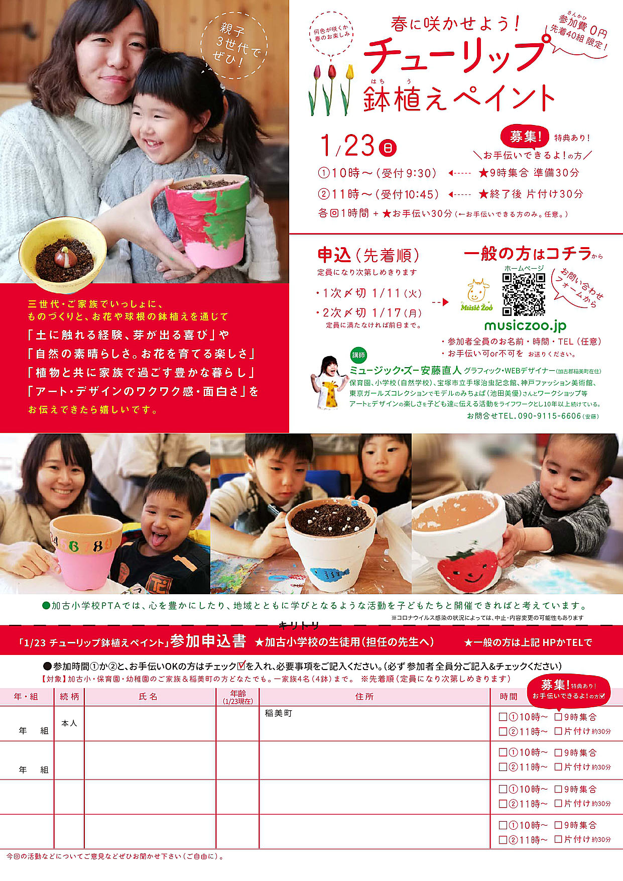 稲美町の補助金に採択いただき、無料〜500円と参加しやすい金額で開催します。